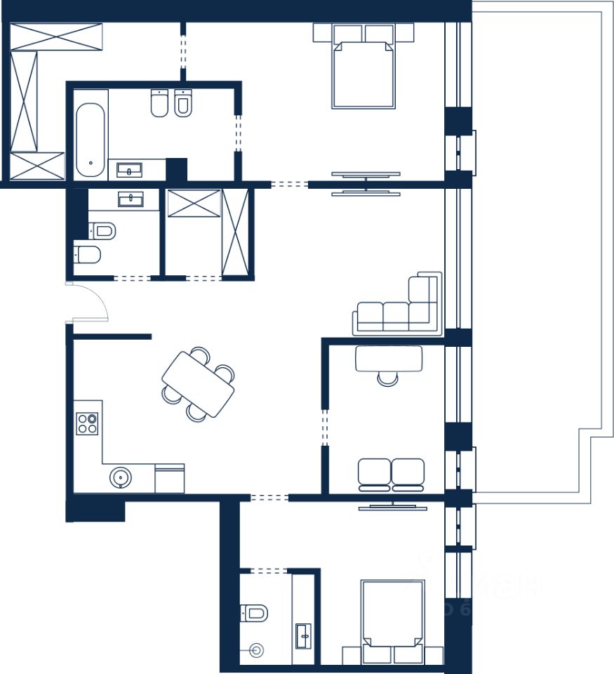 Продаётся 3-комнатная квартира в строящемся доме (Дом 2), срок сдачи: II-кв. 2028, общей площадью 118.63 кв.м., на 1 этаже. Volna Residence - это комплекс для жизни на территории комплекса Volna, объединённый с отелем общей концепцией и инфраструктурой. 3 малоэтажных корпуса на 520 номеров расположены на первой береговой линии и имеют собственный бассейн.
