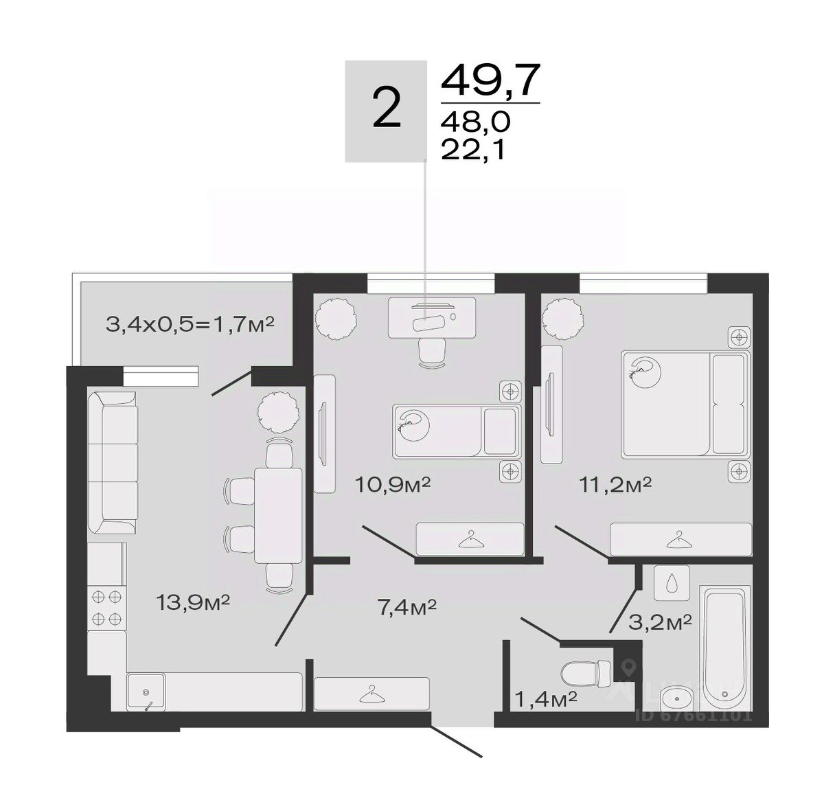 Общая площадь49,7 м2