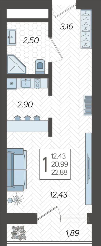 Застройщиком спроектированы одно-, двух- и трехкомнатные квартиры.