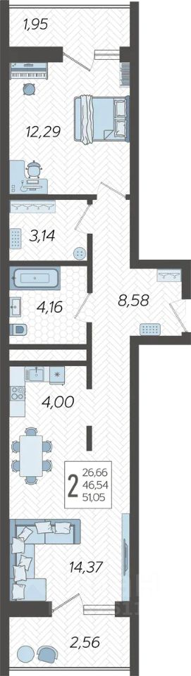 Продаётся 2-комнатная квартира в строящемся доме (Корпус 14), срок сдачи: I-кв. 2026, общей площадью 51.05 кв.м., на 16 этаже. Жилой комлекс ''Кислород'' представляет комплексную застройку, состоящую из 20-ти этажных монолитных домов.