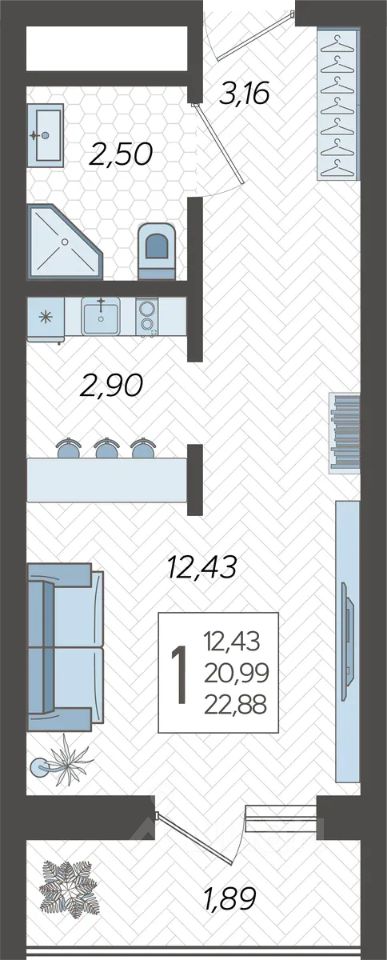 Застройщиком спроектированы одно-, двух- и трехкомнатные квартиры.