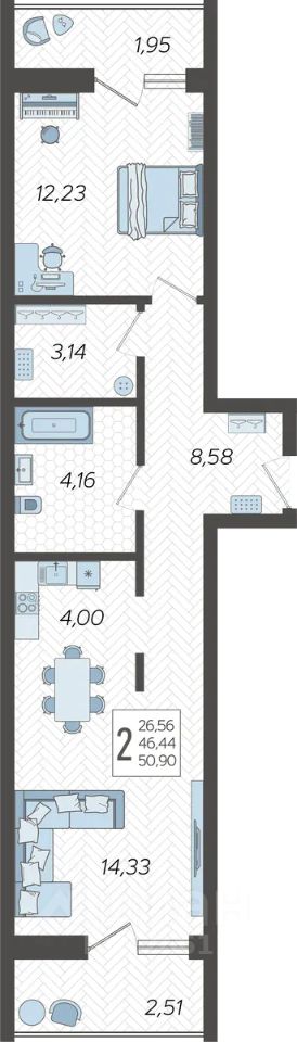 Продаётся 2-комнатная квартира в строящемся доме (Корпус 15), срок сдачи: I-кв. 2026, общей площадью 50.9 кв.м., на 4 этаже. Жилой комлекс ''Кислород'' представляет комплексную застройку, состоящую из 20-ти этажных монолитных домов.