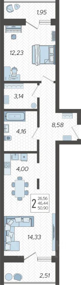 Продаётся 2-комнатная квартира в строящемся доме (Корпус 15), срок сдачи: I-кв. 2026, общей площадью 50.9 кв.м., на 6 этаже. Жилой комлекс ''Кислород'' представляет комплексную застройку, состоящую из 20-ти этажных монолитных домов.