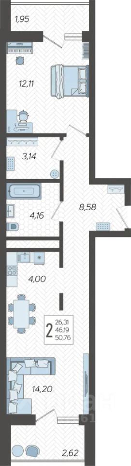 Застройщиком спроектированы одно-, двух- и трехкомнатные квартиры.