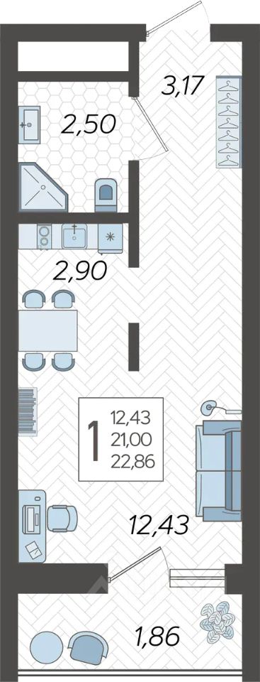 Застройщиком спроектированы одно-, двух- и трехкомнатные квартиры.