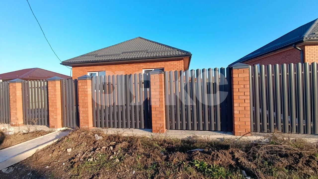 Продаётся новый дом 71 кв. м на участке 3,2 сотки. Участок ровный, фасад 17 м. Материал стен - керамический кирпич + пеплоблок (из вулканической породы, в 4 раза теплее кирпича). Дом продается в предчистовой отделке, с электрическим котлом, теплые полы, уже установлен забор по периметру, сделана парковка. Септик нужно устанавливать - в цену не включен.