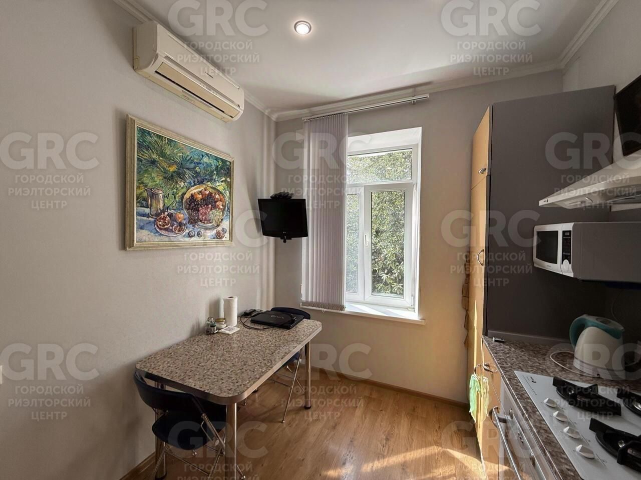 Квартира в самом центре Сочи. Функциональная планировка включает в себя спальню, гостиную, кабинет, кухню, душевую и санузел. Ремонт свежий, в спокойных тонах.