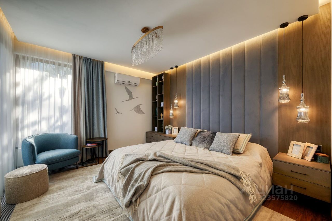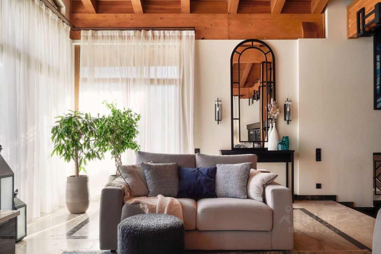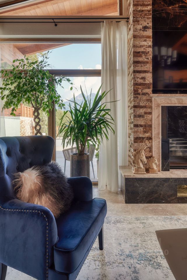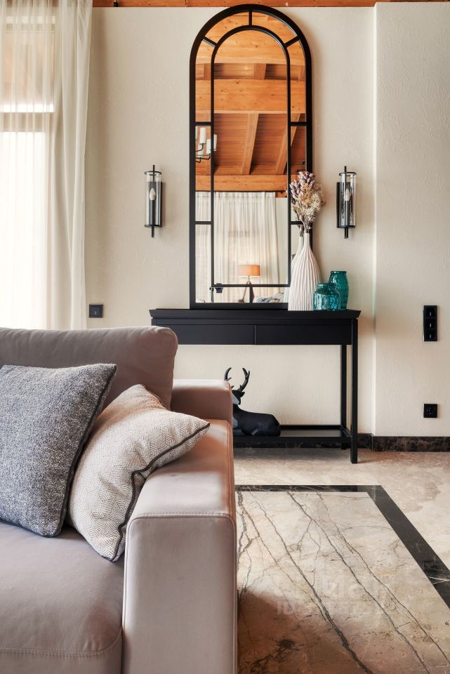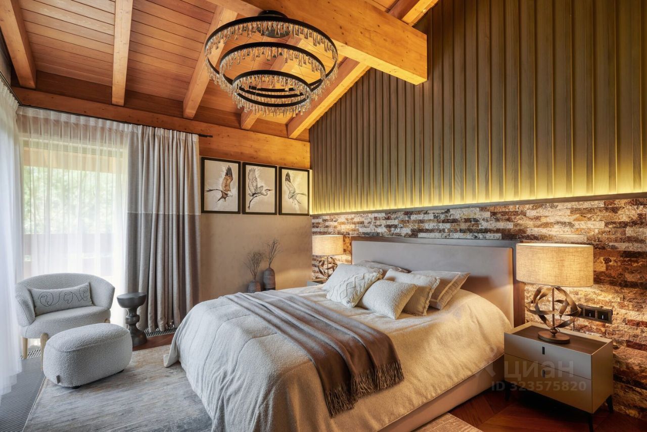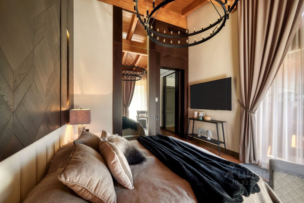 На втором этаже расположены полноценные две гостевые спальни и одна хозяйская мастер-спальня. Панорамное остекление в пол с видом на горные хребты Кавказского Заповедника. В доме выполнен ремонт по индивидуальному проекту от лучшего в России дизайнерского бюро. Использованы высококачественные материалы. Мебель и техника привезены на заказ.