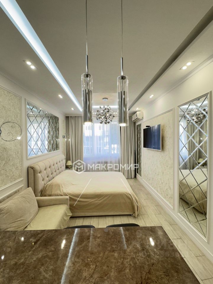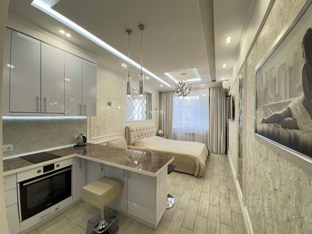 Апартаменты с ремонтом премиум-класса-это современный дизайн и высококачественная отделка. Полностью оборудованная студия соответствует стандартам гостиничных номеров. Апартаменты оснащены современными мебелью и техникой .