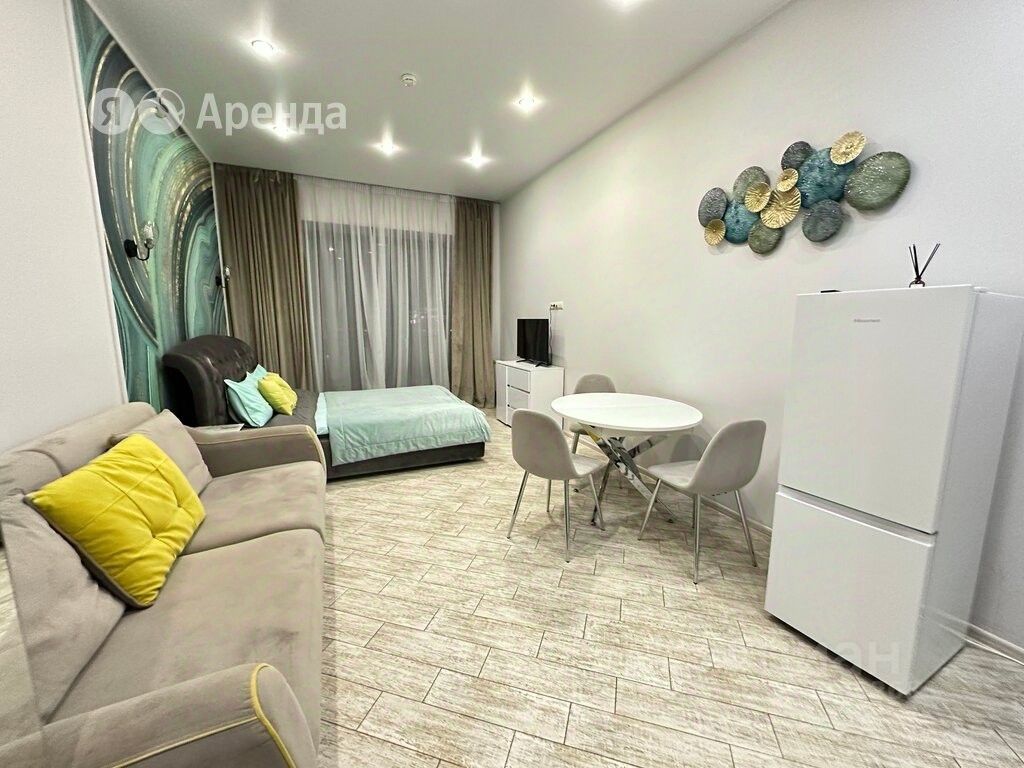 Сдаётся студия площадью 45 кв.м. с евроремонтом на 4 этаже в 26-этажном доме на срок от 11 месяцев. Из техники есть: Телевизор Стиральная машина Холодильник Кондиционер
