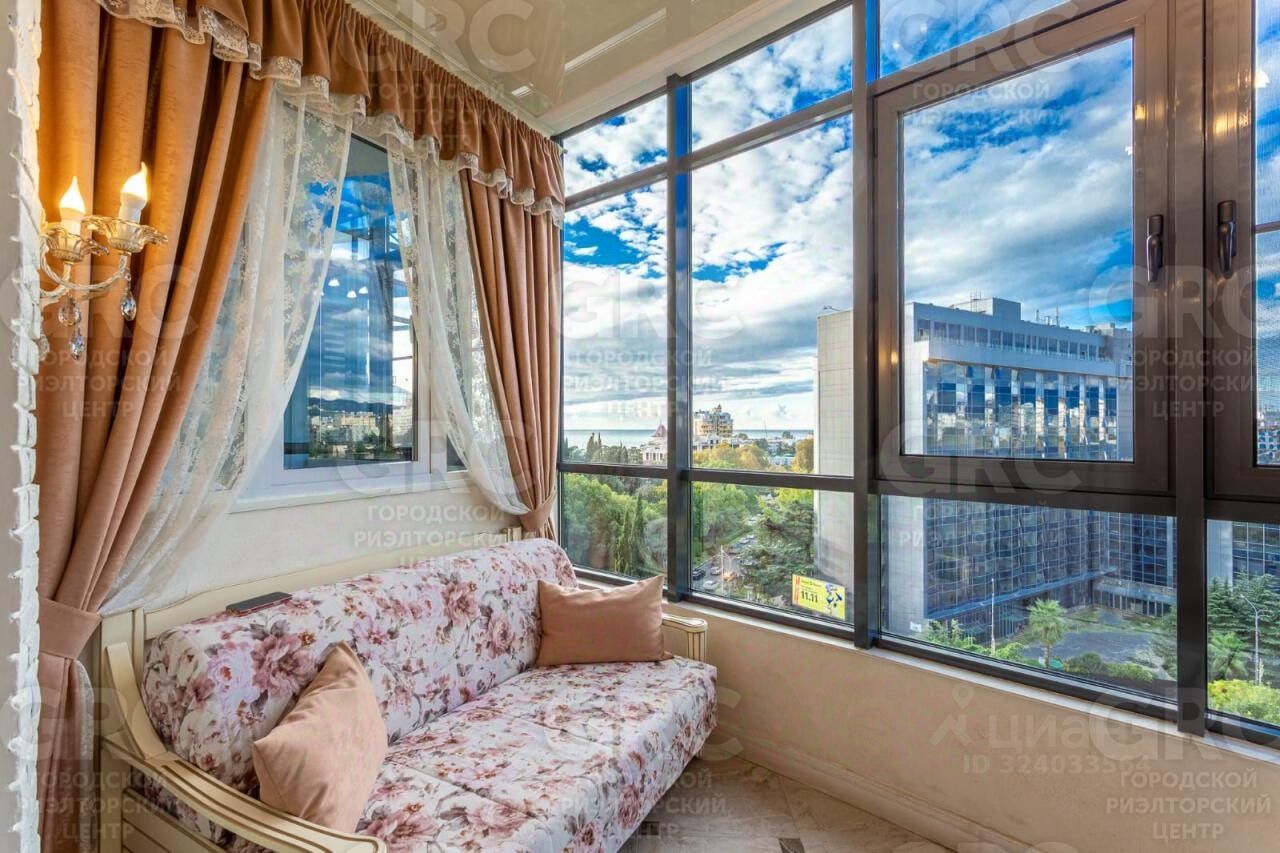 Предлагается к покупке шикарная трехкомнатная квартира площадью 120 кв.м, расположенная в новом жилом комплексе ''Красная площадь''. В комплексе установлена система ''умный дом'', позволяющая управлять всеми коммуникациями квартиры, не вставая с места. ЖК обладает собственной инфраструктурой: многоуровневый подземный паркинг, ресторан европейской кухни, супермаркет, современная детская игровая площадка и многое другое. Придомовая территория закрыта, ведется круглосуточное видеонаблюдение. Квартира укомплектована качественной мебелью и техникой лучших производителей, выполнен ремонт. Планировка функциональная: просторная кухня-гостиная, гардеробная, три спальни, два санузла. Из витражных окон открывается вид на город и морское побережье. Местоположение дома уникальное - это самый центр города Сочи (ул. Войкова) неподалеку от здания бывшей гостиницы Москва. Это самый центр города с прямым выходом к морскому побережью около 400 метров. Статус - квартира. Полная стоимость.