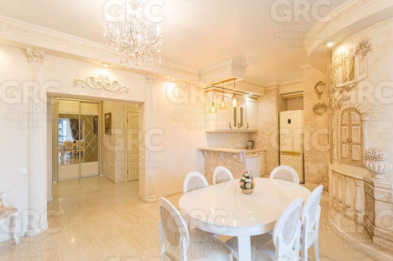 Предлагается к покупке шикарная трехкомнатная квартира площадью 120 кв.м, расположенная в новом жилом комплексе ''Красная площадь''. В комплексе установлена система ''умный дом'', позволяющая управлять всеми коммуникациями квартиры, не вставая с места. ЖК обладает собственной инфраструктурой: многоуровневый подземный паркинг, ресторан европейской кухни, супермаркет, современная детская игровая площадка и многое другое. Придомовая территория закрыта, ведется круглосуточное видеонаблюдение. Квартира укомплектована качественной мебелью и техникой лучших производителей, выполнен ремонт. Планировка функциональная: просторная кухня-гостиная, гардеробная, три спальни, два санузла. Из витражных окон открывается вид на город и морское побережье.