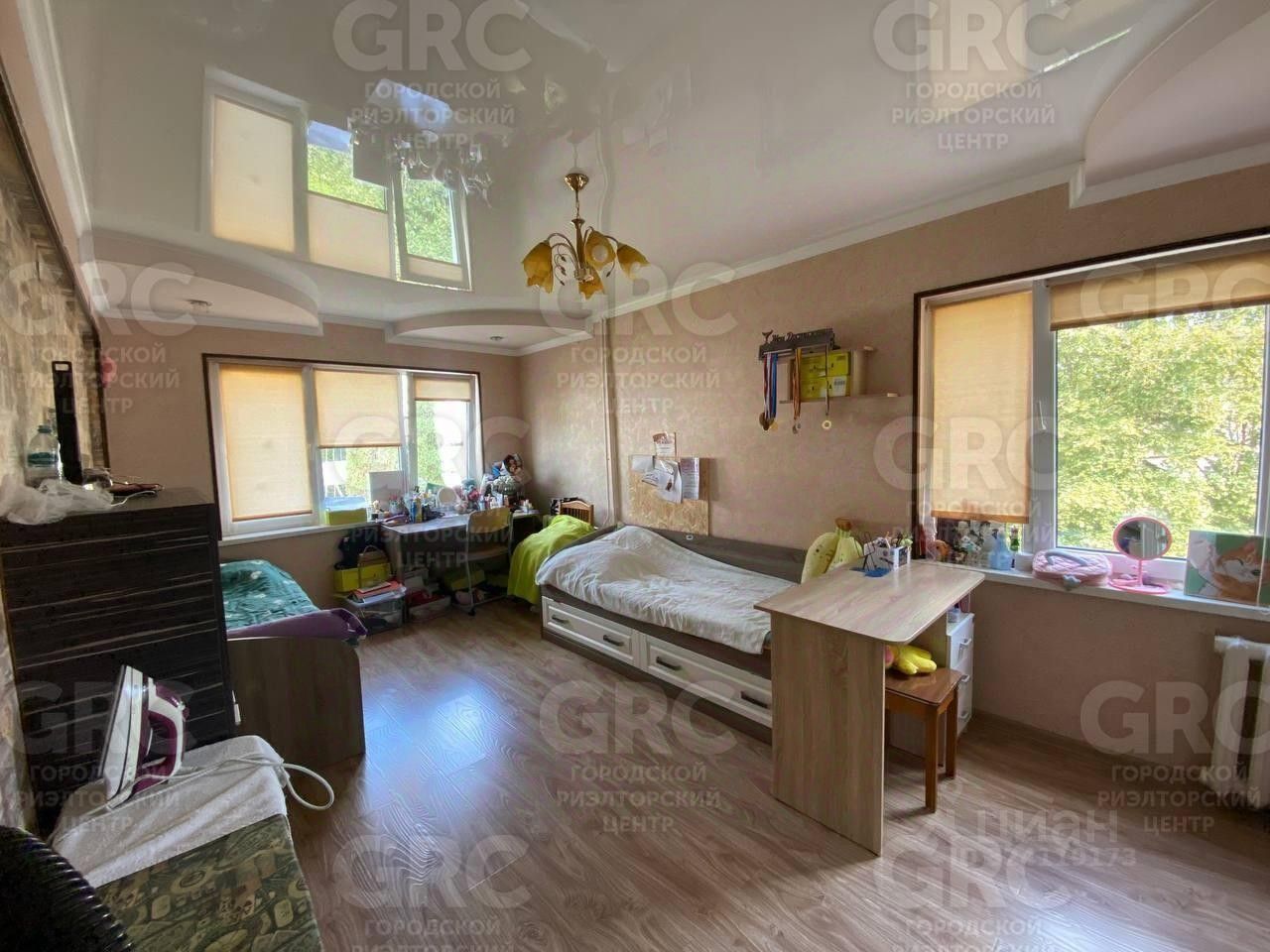 В каждой комнате большие светлые окна, которые выходят во двор и зеленые насаждения.