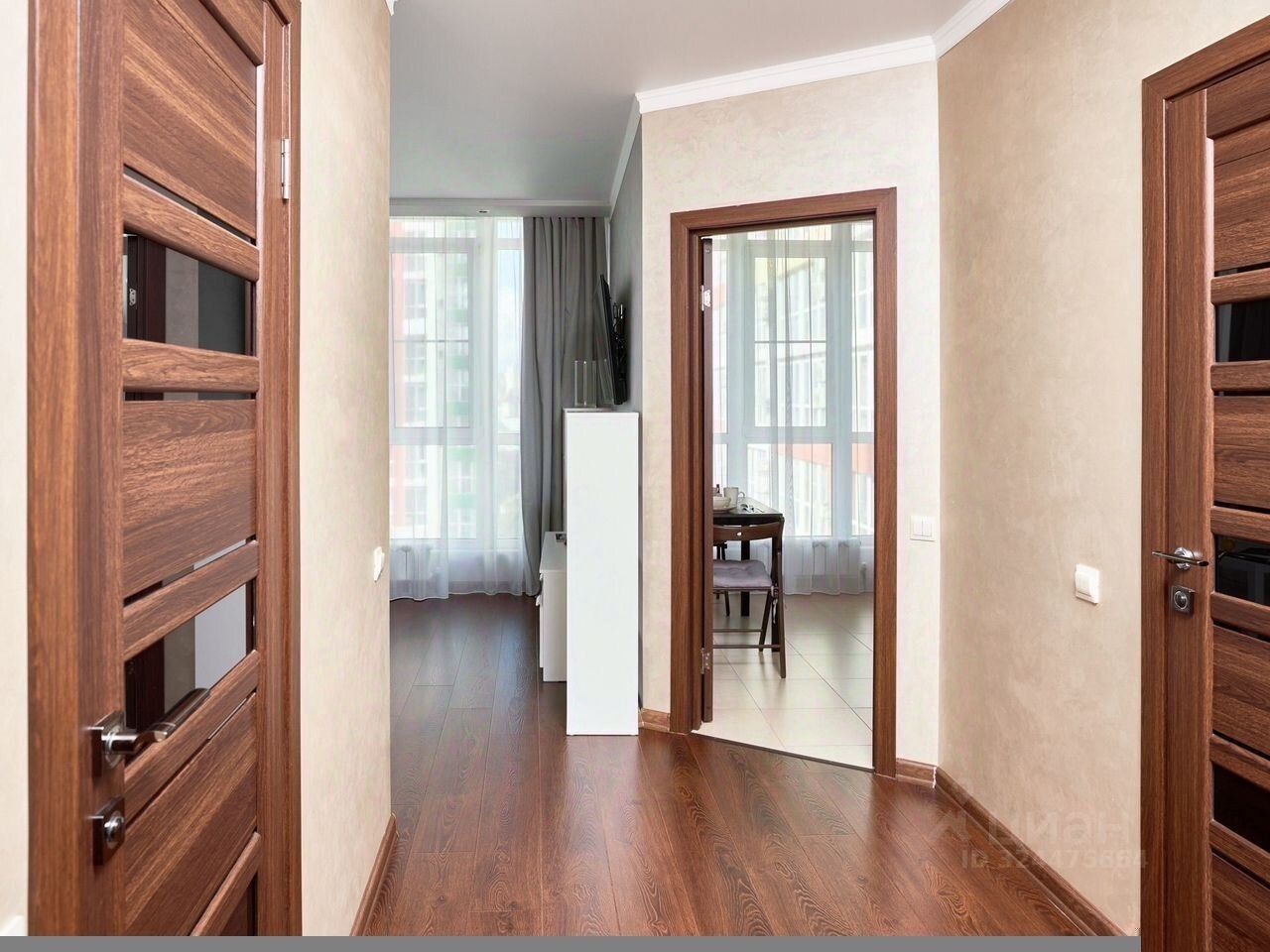 В квартире отдельно выделена кухня, гардеробная.