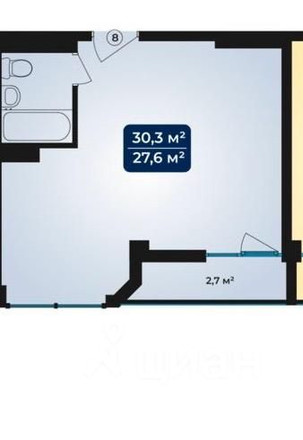 Уютная студия в жилом комплексе ''Море'' . Квартира в черновой отделке.