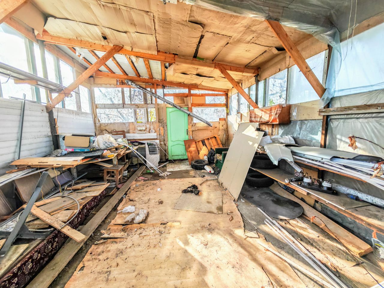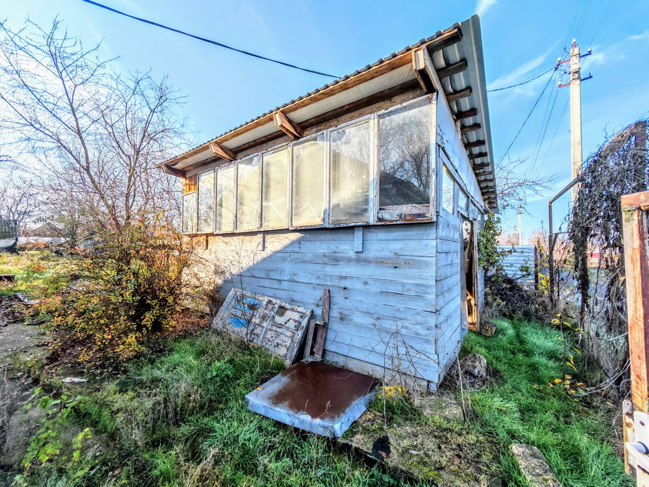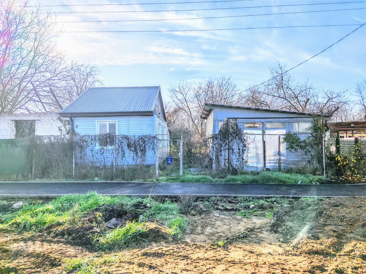 Из хоз.построек: помещение, которое можно использовать, как гараж, или как мастерскую, сараи, уличная колонка. Канализация - септик. Земельный участок в пользовании с плодовыми деревьями. Железный забор, ширина фасада 15,46 м.. Перед двором есть место для стоянки автомобиля.