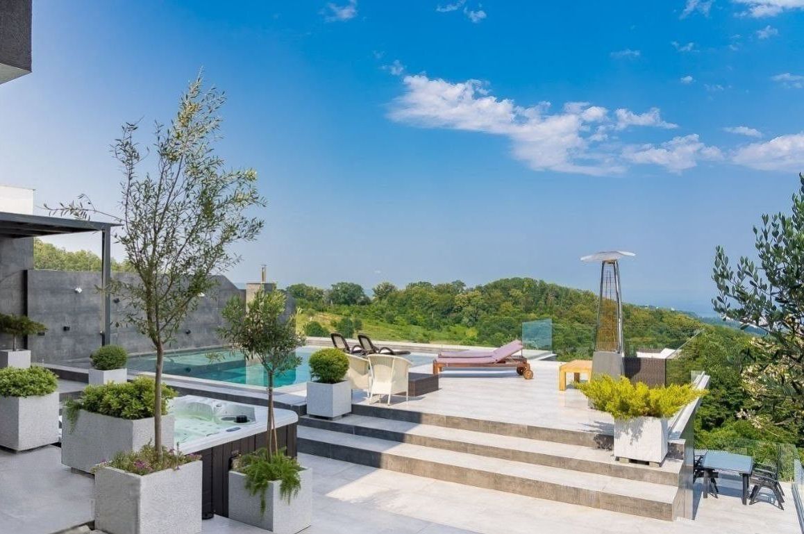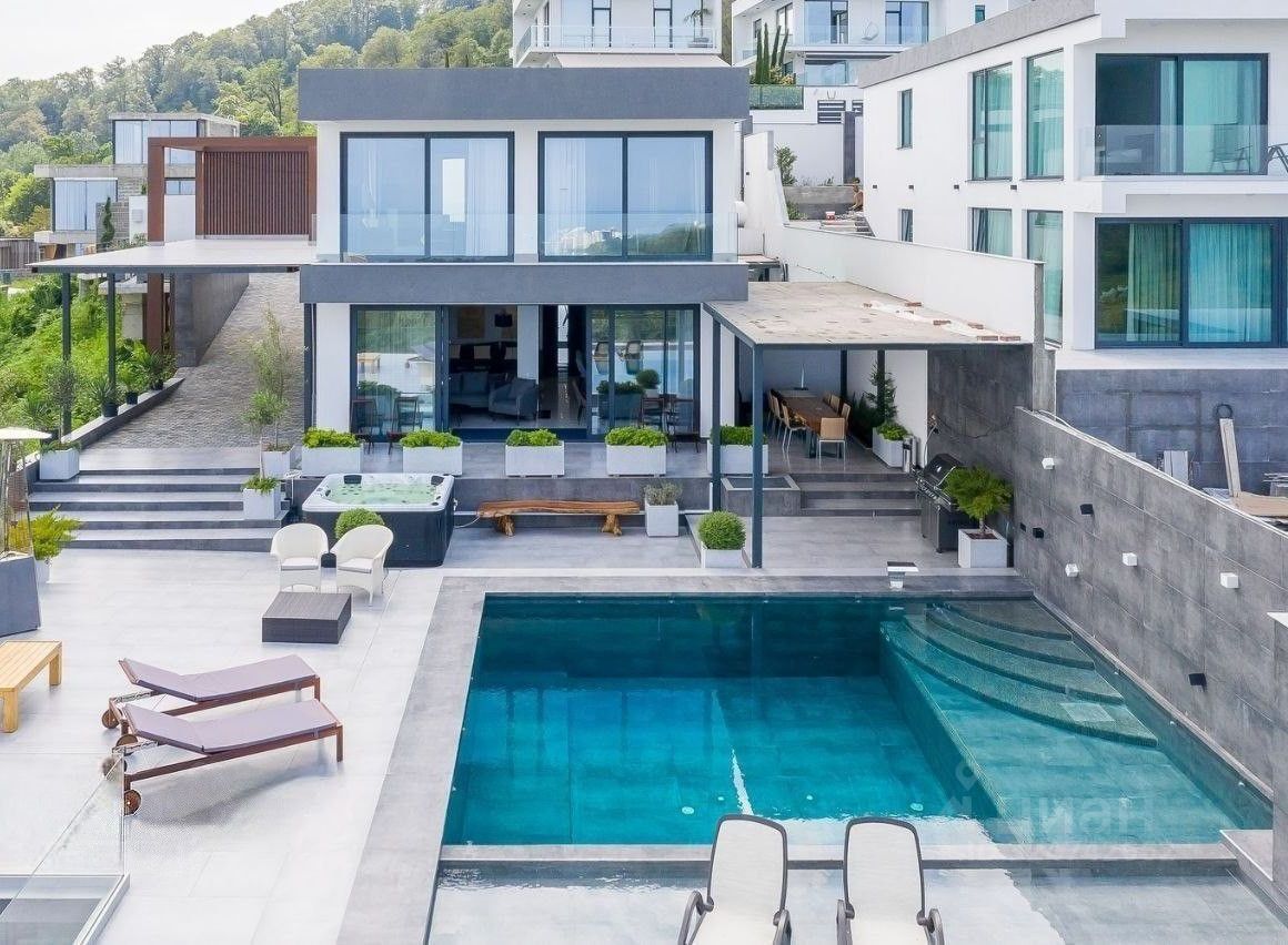 Расположенный в одном из самых респектабельных районов Сочи, этот двухуровневый коттедж обеспечивает высочайший уровень проживания благодаря уникальной архитектуре, изысканным интерьерным решениям и восхитительному виду на морские просторы, ночной город и густые лесистые холмы.