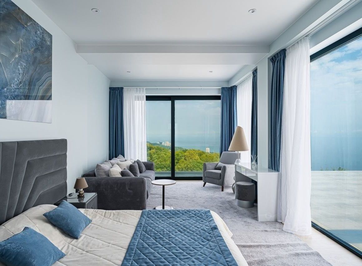 — Потрясающие пейзажи: роскошные панорамные окна открывают завораживающие перспективы на Черноморские берега, сверкающую ночную иллюминацию города и величественные вершины Кавказских гор.