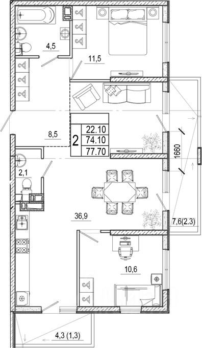 Общая площадь77,7 м2