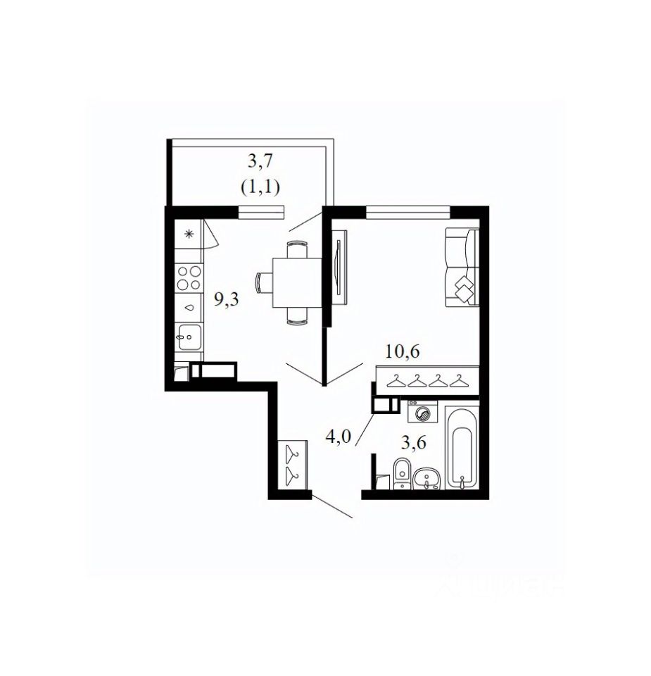 Жилая площадь10,6 м2