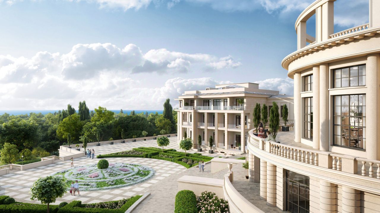 Добро пожаловать в ''Grand Royal Residences'' - уникальный, даже в масштабах России, комплекс апартаментов, расположенный на самой высокой точке Черноморской Ривьеры в центре Сочи. Пять монументальных корпусов бывшего санатория им. Кирова, приобретающих современный лоск.