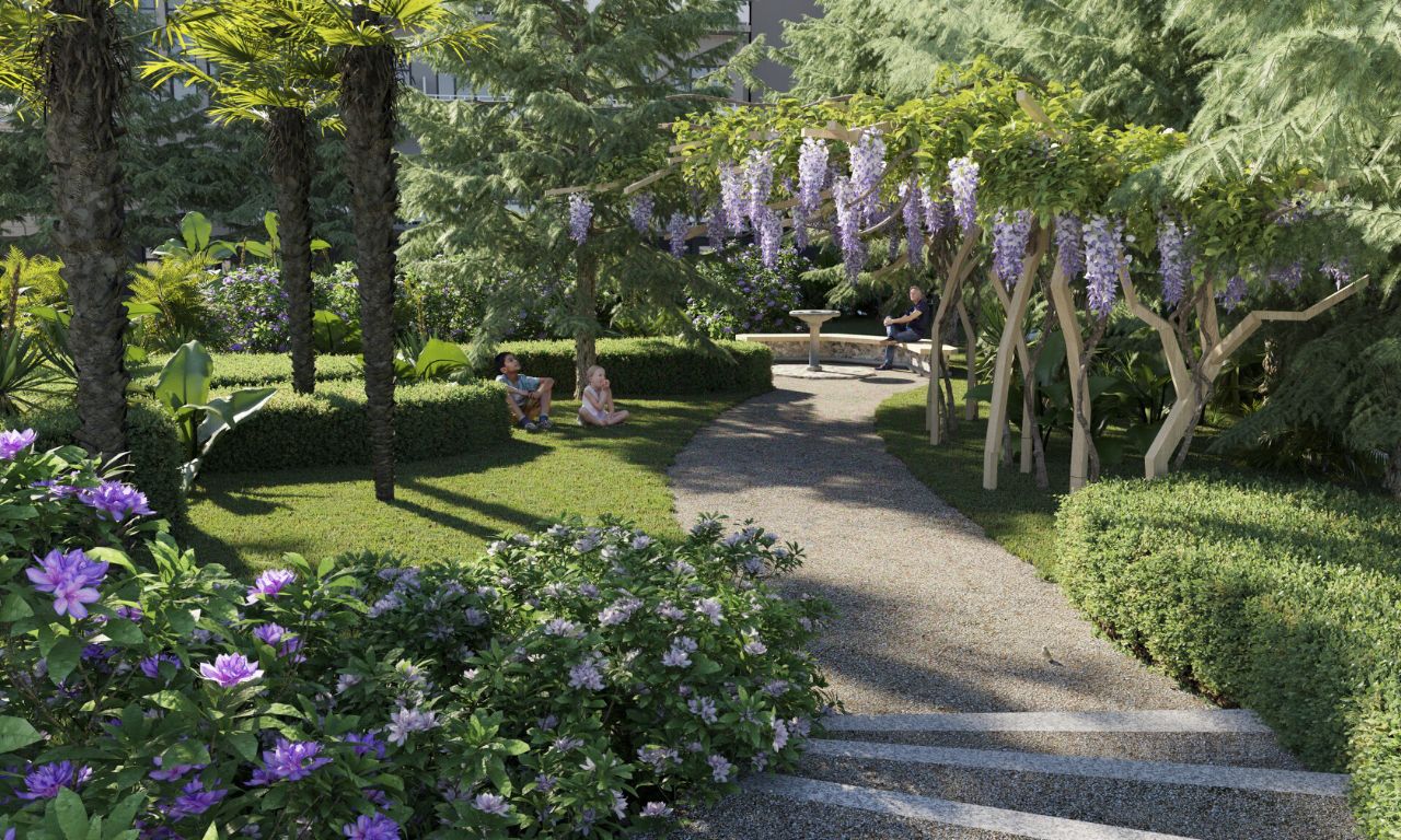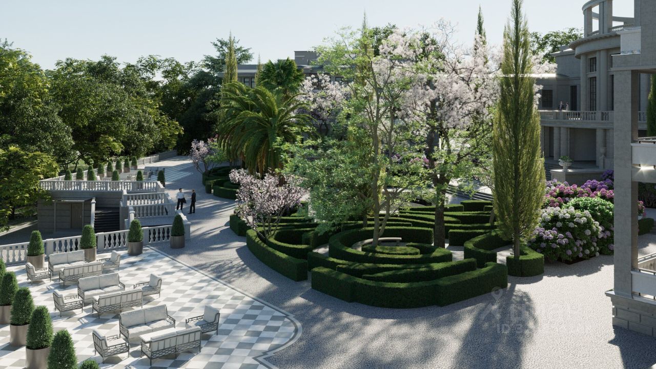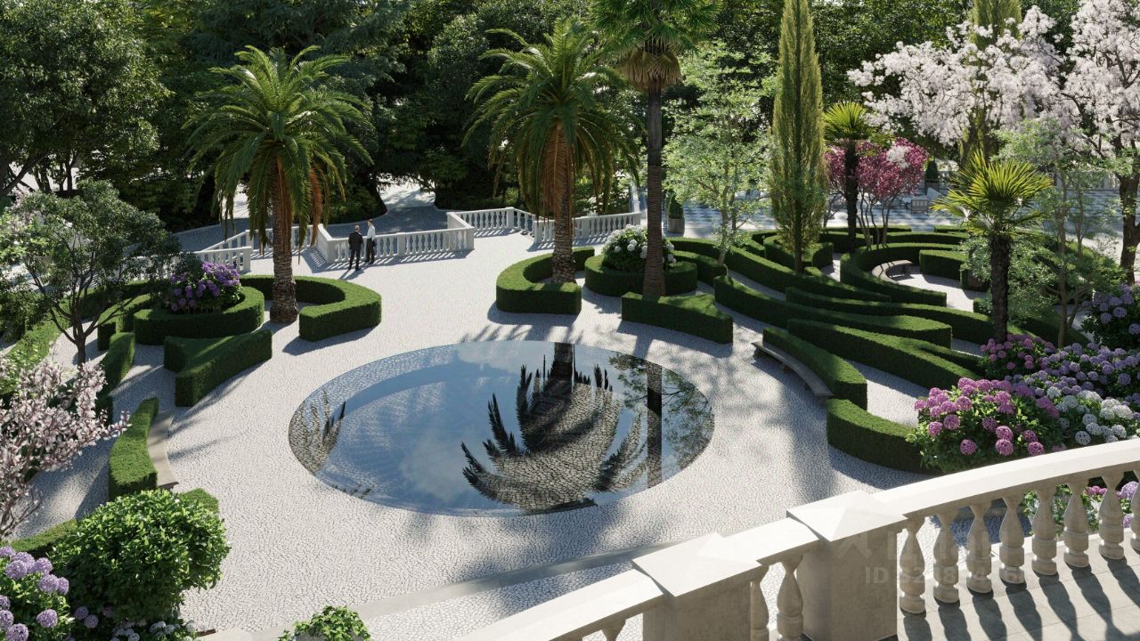 Комплекс находится на закрытой парковой территории площадью 4 га, утопает в зелени тропических и субтропических растений. Уютные зеленые дворики в итальянском и японском стиле каждая деталь призвана подчеркнуть связь архитектуры с окружающим ландшафтом, где проект дизайна территории разрабатывали Arteza ведущая ландшафтная компания России.