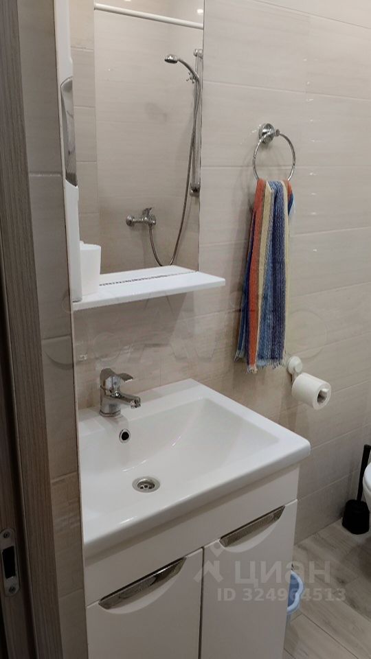 Санузел совмещенный, оснащён современной сантехникой и стиральной машиной. В квартире есть кондиционер для комфортного проживания в любое время года.