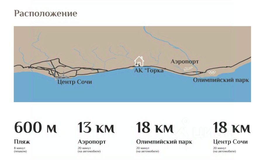 AK ''Горка'' (апарт-комплекс Горка) — это комплекс бизнес-класса, со своей закрытой и охраняемой территорией, ландшафтным озеленением, подземным и надземным паркингом, кафе-рестораном, тренажерным залом со СПА-зоной. Комплекс расположен на ул. Шоссейная в тихом и уютном микрорайоне ''Хоста'', который является санаторно-курортной зоной.