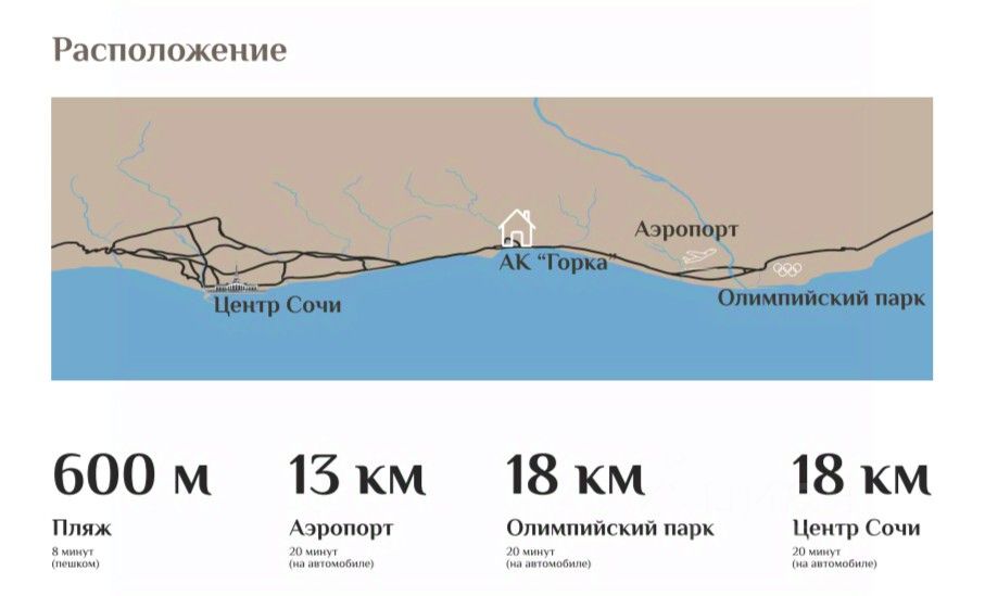 AK ''Горка'' (апарт-комплекс Горка) — это комплекс бизнес-класса, со своей закрытой и охраняемой территорией, ландшафтным озеленением, подземным и надземным паркингом, кафе-рестораном, тренажерным залом со СПА-зоной. Комплекс расположен на ул. Шоссейная в тихом и уютном микрорайоне ''Хоста'', который является санаторно-курортной зоной.