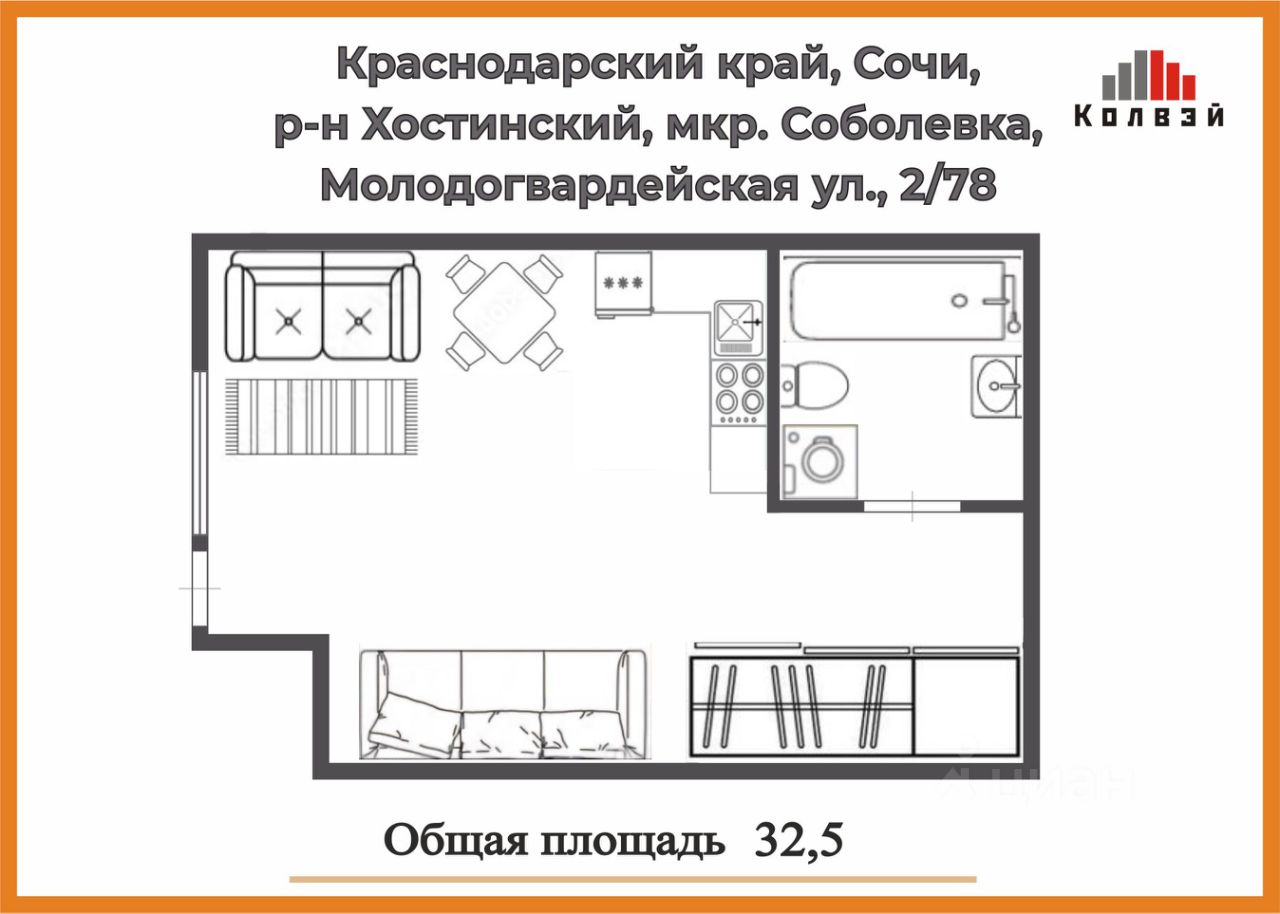 2-08, Вашему вниманию предлагается отличная просторная квартира-студия в новом элитном микрорайоне 'Соболевка' - одном из самых живописных районов Большого Сочи!