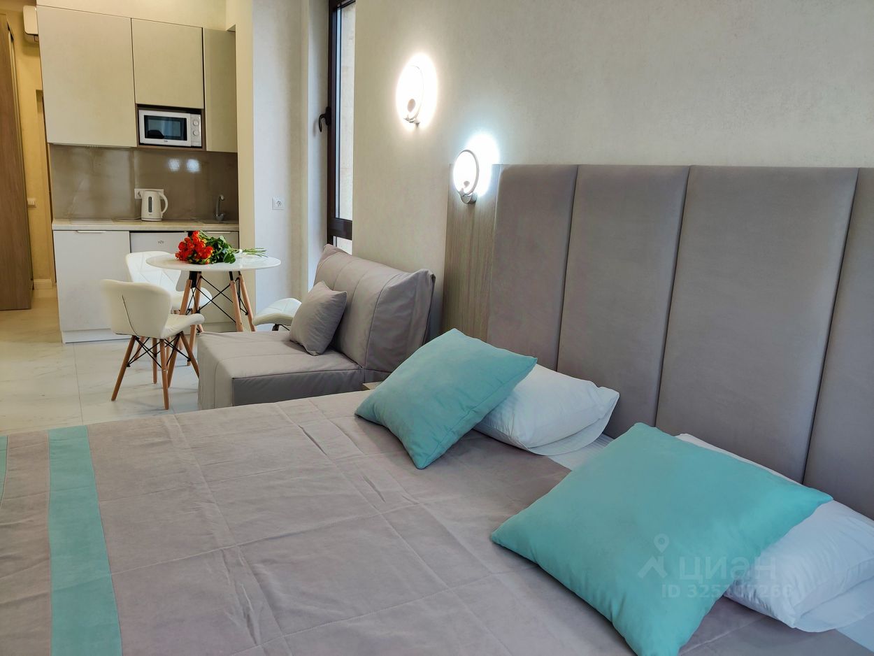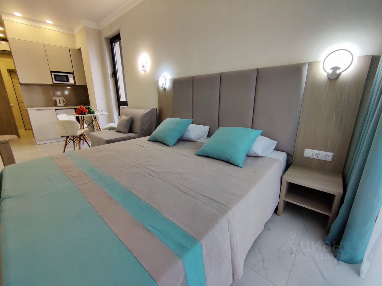 Апартаменты находятся на закрытой охраняемой территории с видеонаблюдением и предлагают все удобства для комфортного проживания. Внутри выполнен дизайнерский ремонт, включающий премиум-отделку с использованием натуральных материалов. Просторная комната со встроенной кухней, совмещённым санузлом и уютным балконом предоставляет панорамный вид во двор. Здесь вы сможете наслаждаться утренним кофе на свежем воздухе или вечерами проводить время с любимыми.