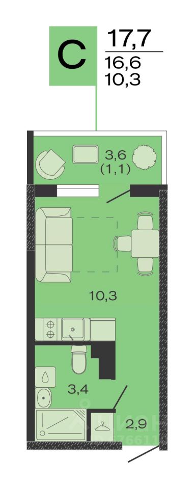 Общая площадь17,7 м2