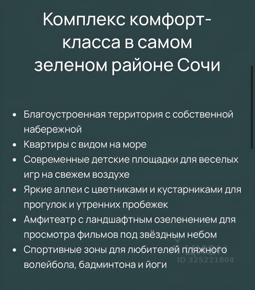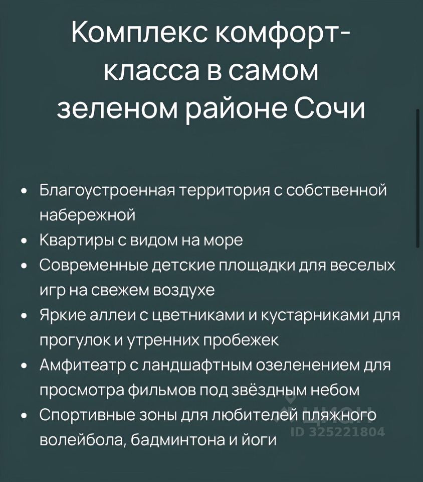 Продаю готовую новую квартиру в самом зеленом районе Сочи (получили ключи в 2024). Из всех прочих плюсов, у нашего ЖК есть главный приоритет- это равнина с быстрым, прямым и комфортным выходом к морю!
