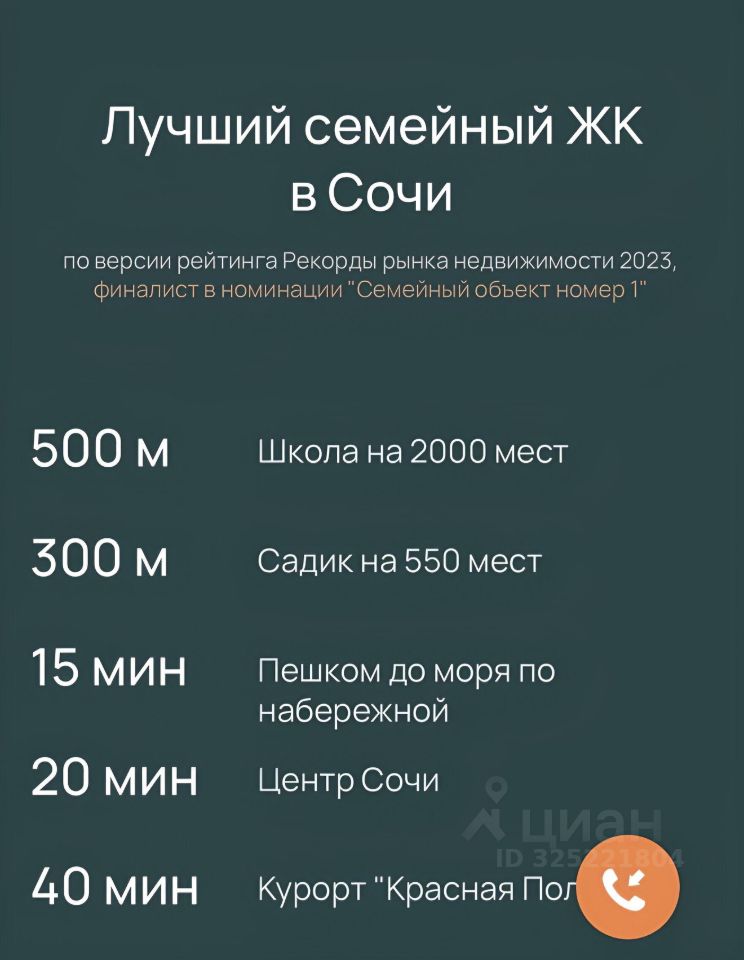 Лучший семейный ЖК в Сочи по версии рейтинга Рекорды рынка недвижимости 2023, финалист в номинации ''Семейный объект номер 1