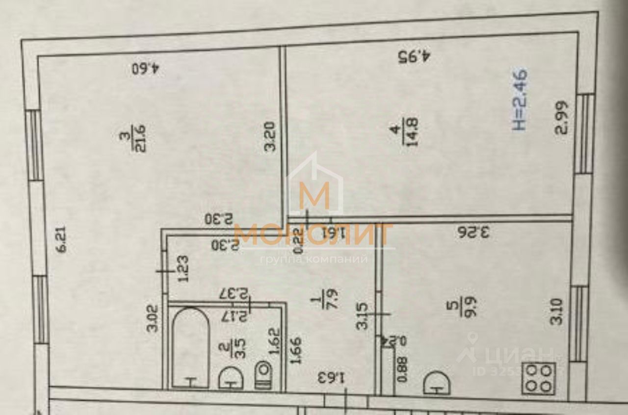 общая площадь 57,7 м