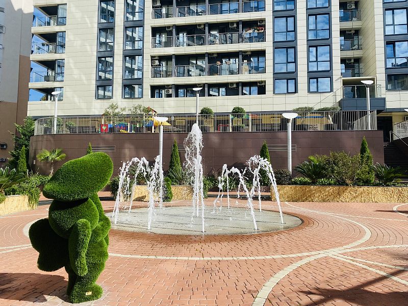 Достоинства квартиры - Квартира расположена в комплексе с закрытой территорией, где имеются детские игровые площадки, баскетбольное поле и фонтан в центральной части двора.