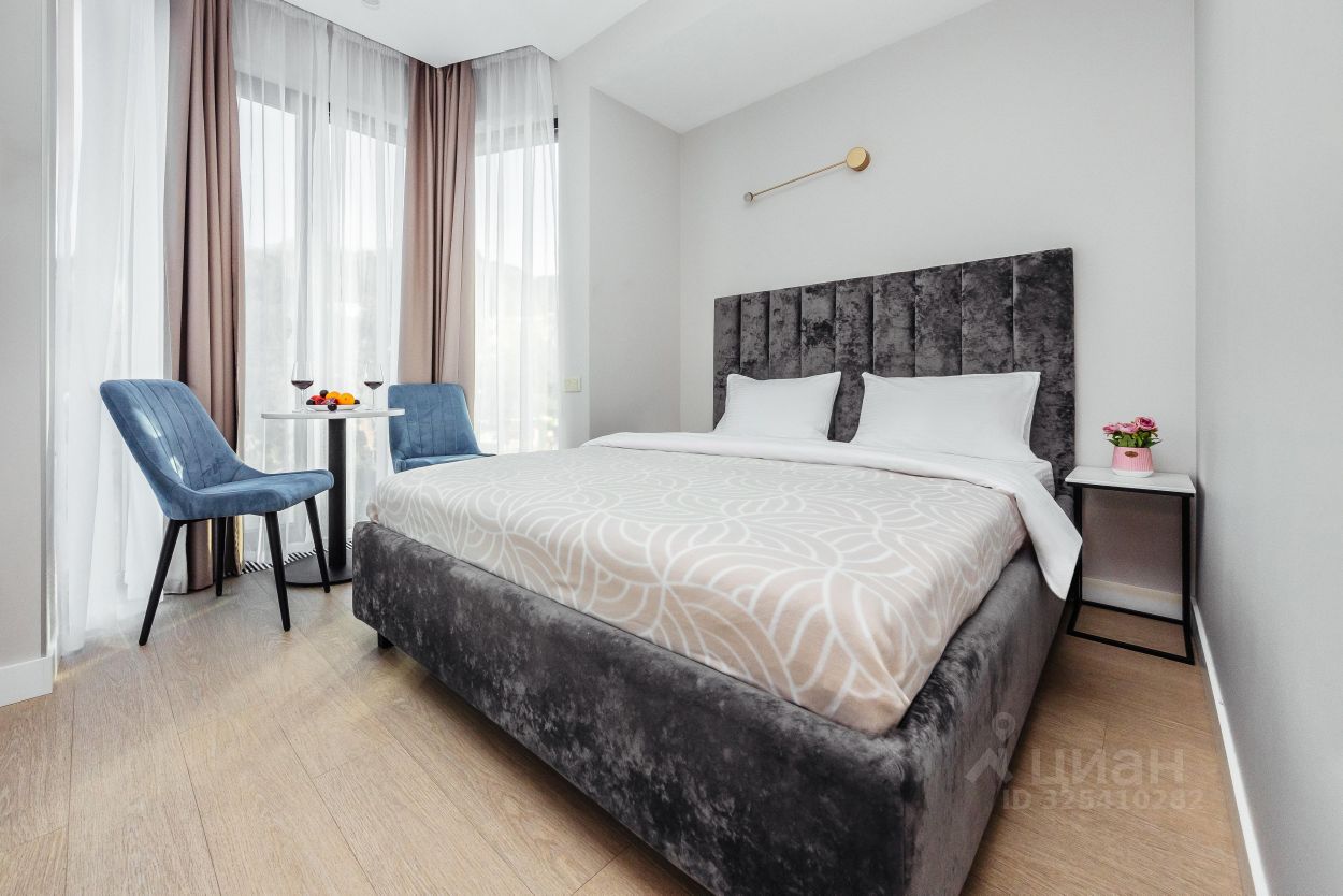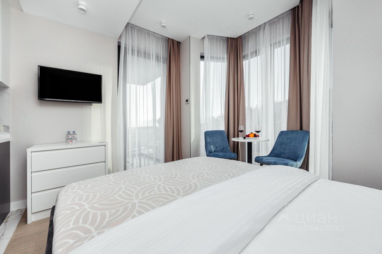 Комплекс класса 4* включает в себя большую закрытую охраняемую территорию с собственным пляжем, оборудованным комфортными шезлонгами и мягкими креслами для вашего отдыха. Для любителей плавания предусмотрены два круглогодичных бассейна-инфинити, один из которых радует гостей потрясающим видом на город Сочи, так как расположен на высоте 25 метров.