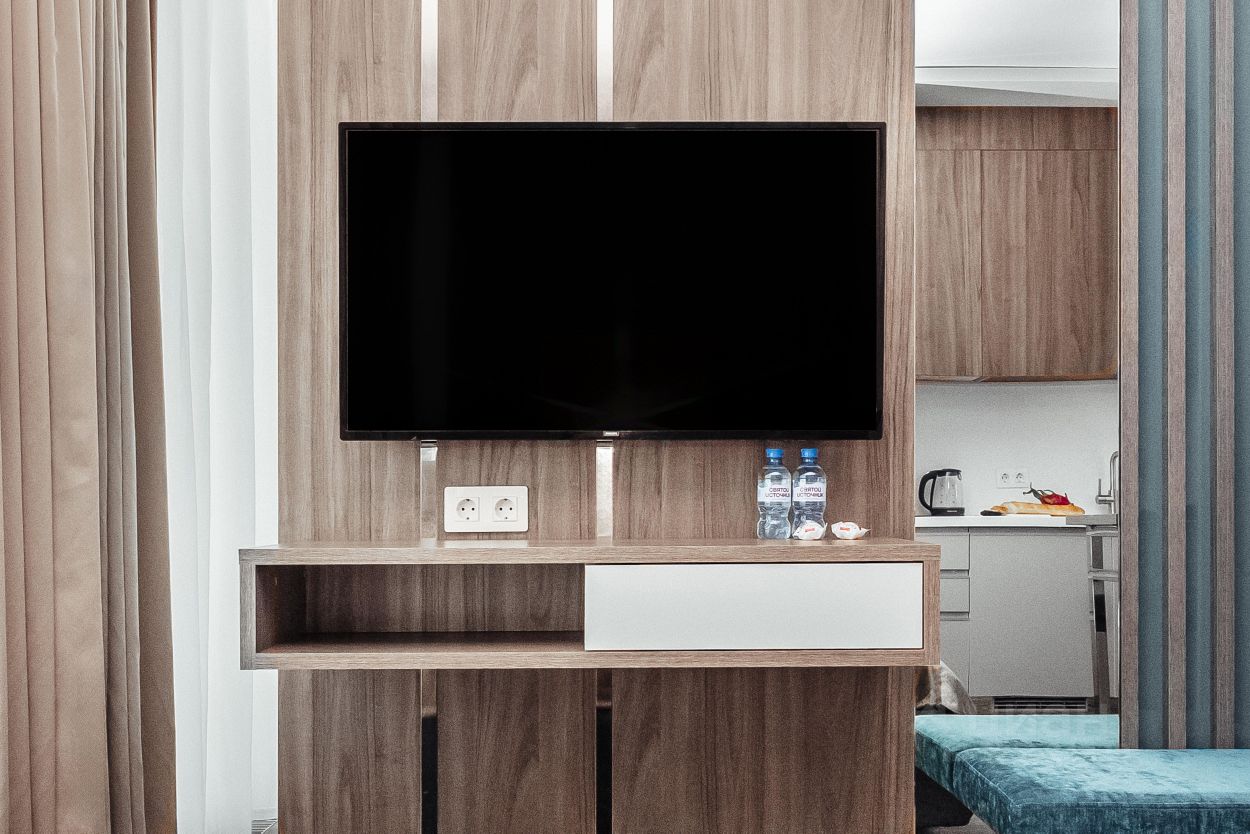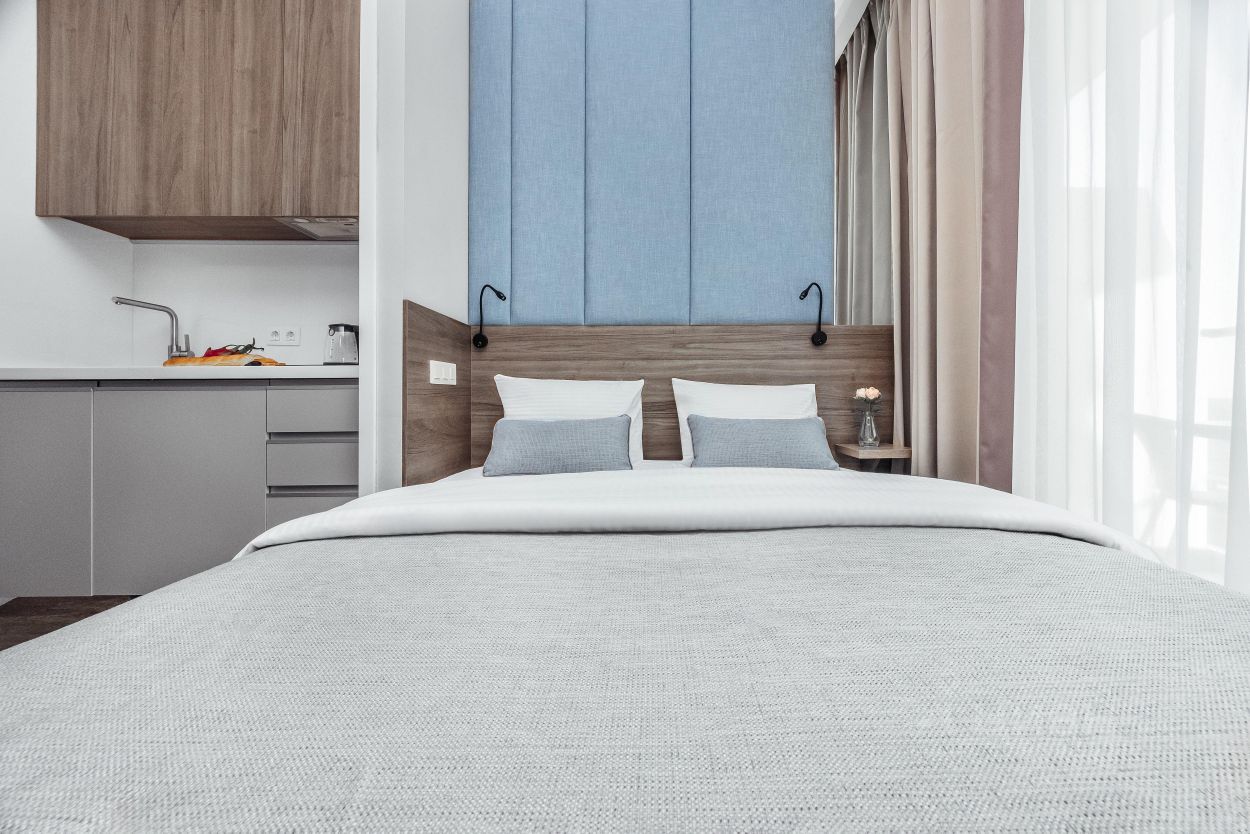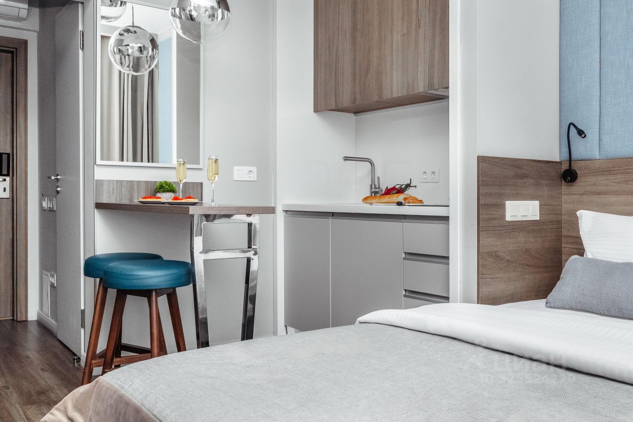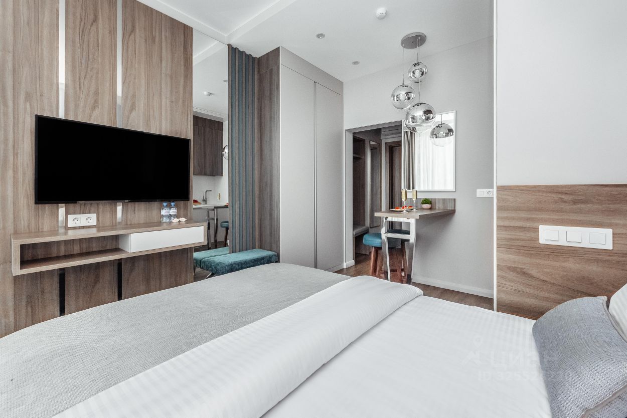 Прекрасный апартамент с новым дизайнерским ремонтом, большим балконом и прекрасным видом на море и парковую зону в аренду для двух гостей, в апарт-комплексе ''Лучезарный 4*'', в 25 метрах от моря.