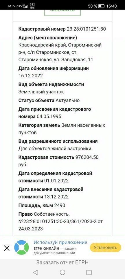 Кадастровый номер.