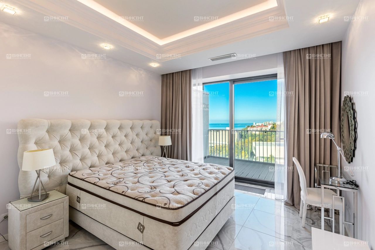 Собственная территория, охрана, бассейн и рестораны - всё это лишь малая часть тех необходимых привилегий, которые предоставляет нам этот комплекс. Апартамент расположен на высоком этаже, в носовой, закрытой части, что многократно увеличивает комфортность проживания. Вид и приватность это то, чему здесь уделено максимум внимания, Планировка классическая. Это две больших спальни с панорамой моря. Гостиная с окнами и выходом на террасу, Электрокарнизы - приводы Glydea Ultra (Somfy), Франция, Сантехника тропический душ, водопад Grohe, Германия, хамам с парогенератором, дизайнерская мебель. Экологически чистые тканевые натяжные потолки, Германия. Авторская дизайнерская отделка интерьера в стиле модерн Black and White. Возможен возврат НДС!