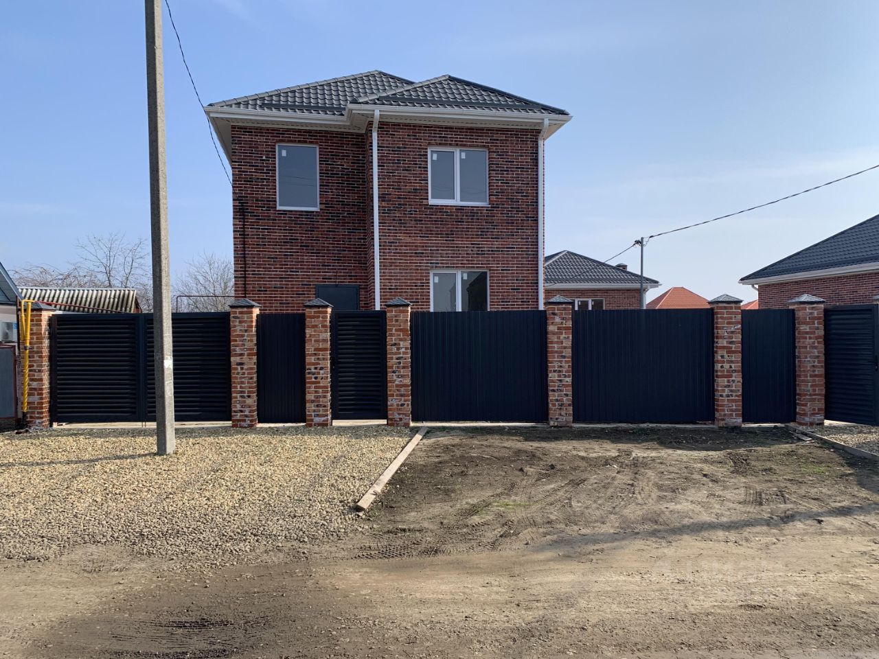 Дом полностью из кирпича, в предчистовой отделке, все коммуникации. Полный пакет документов, включая разрешение на строительство.