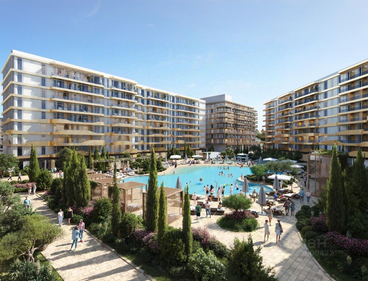 Площадь комплексной застройки 32 га. Самый большой крытый аквапарк на побережье, собственная набережная, SPA, банный комплекс, конференц-холл на территории курорта.