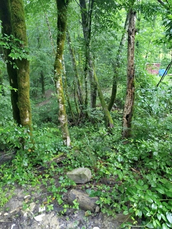 Участок не разработан.Дорога через кладбище.Красивое место.Соседи тихие.Свет 15 кВт.Воду и канализацию надо делать самим.Вода из родника.Въезд через Хрустальный переулок на Мацесте,не доезжая до Измайловски.