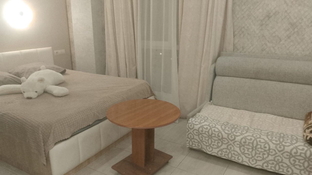 В квартире выполнен качественный евроремонт, что создаёт атмосферу уюта и комфорта. Пространство студии продуманно организовано: есть удобная мебель как на кухне, так и в жилой зоне. Для вашего удобства установлена современная техника: кондиционер, холодильник, телевизор и стиральная машина. Совмещённый санузел оборудован всем необходимым.