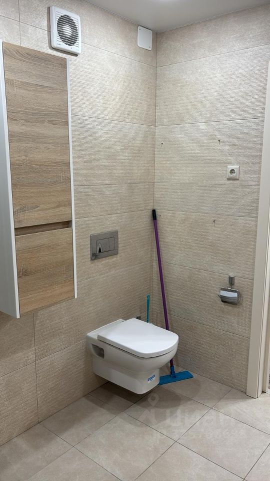 Просторный санузел с дорогой плиткой и сантехникой.