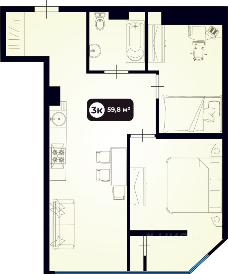 Общая площадь59,8 м2