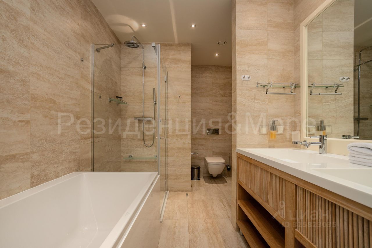 Планировка с мастер спальней (свой санузел и гардероб), гостевым санузлом и просторной кухней-гостиной с выходом на террасу! Потрясающие видовые характеристики, витражные раздвижные окна в пол.