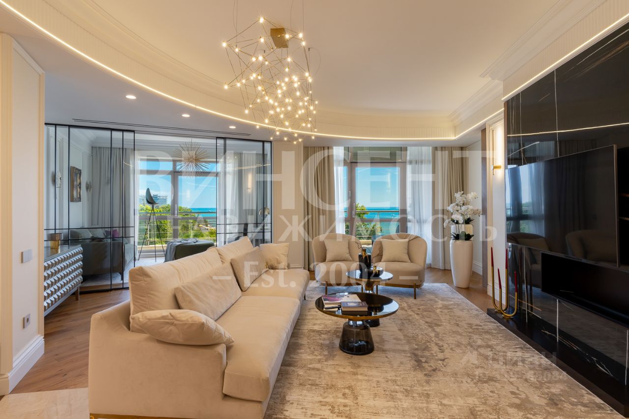 Сдаётся в аренду на длительный срок эксклюзивная четырёхкомнатная квартира с дизайнерским ремонтом в элитном жилом комплексе Александрийский Маяк — в самом сердце Сочи, на первой береговой линии.
