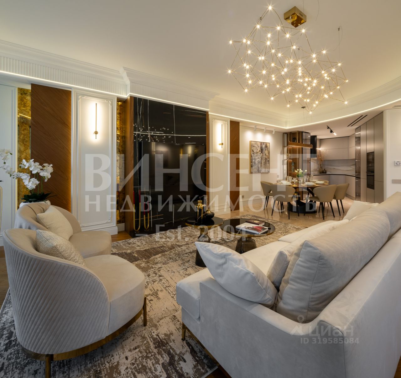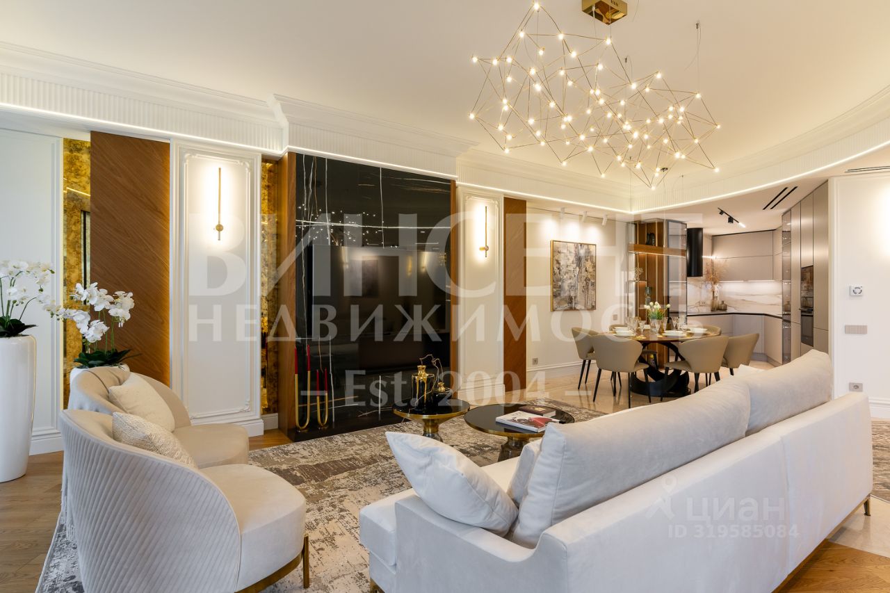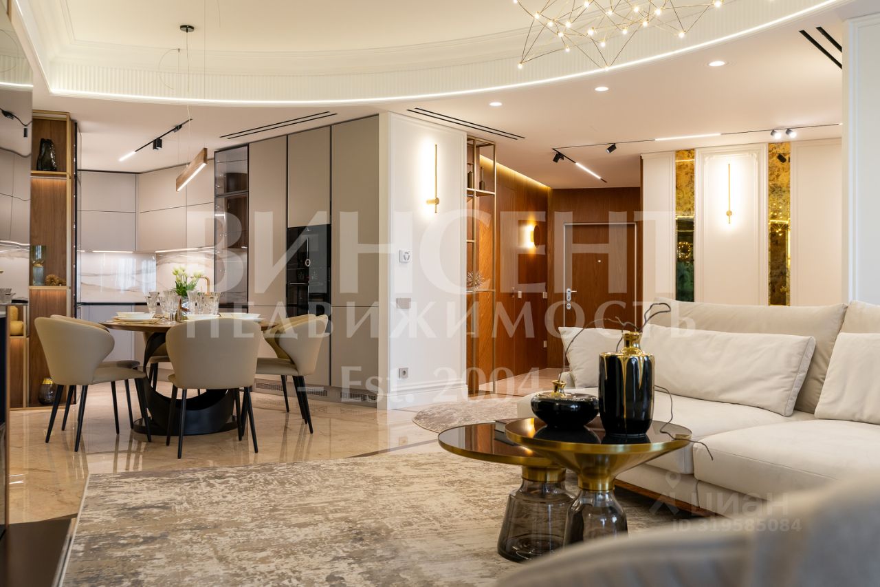В квартире выполнена высококачественная отделка с использованием натуральных материалов, световые решения и мебель подобраны от ведущих итальянских брендов. Интерьер сочетает стиль, функциональность и безупречный вкус.