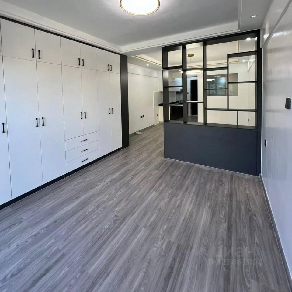 Студия до конца не обустроена, все, что есть на фотографиях - остается новому собственнику. В студии есть отличный большой шкаф! Между кухней и кроватью установлена перегородка.